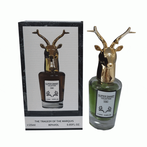 ادکلن 25 میل سوپر اسمارت کالکشن کد 036 مشابه رایحه پنهالیگونز د تراژدی آف لرد جورج می باشد. پنهالیگونز د تراژدی آف لرد جورج super smart collection 036 با رایحه ی گرم برای استفاده در روزهای سرد سال پیشنهاد می شود. ادکلن پنهالیگونز د تراژدی آف لرد جورج با داشتن رایحه های شرقی نشان دهنده اصیل ترین و ناب ترین ویژگی های مردانه شما است. با استفاده از این ادکلن به راحتی در مهمانی ها توجه بانوان زیبا را به خود جلب خواهید کرد.