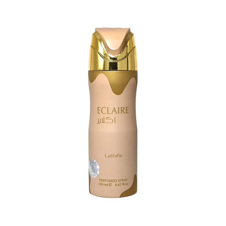 اسپری بدن اکلایر لطافه حجم ۲۰۰ میل (Lattafa Eclaire) یک اسپری زنانه با رایحهای گرم، شیرین و اغواگر است که الهامگرفته از رایحه محبوب اکلایر لطافه (مشابه عطر Billie Eilish No. 1) میباشد. این اسپری با نتهای خوشمزه و اغواگر وانیل، کاکائو، نارگیل و شکر، حس لطافت و اعتمادبهنفس را برای تمام طول روز به همراه دارد.